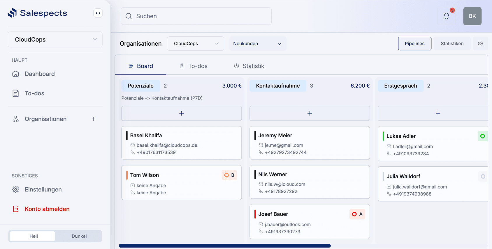 Die meisten CRMs sind überladen. Salespects konzentriert sich konsequent auf Klarheit, Geschwindigkeit und Effizienz – damit Sie jeden Tag mehr Abschlüsse erzielen.